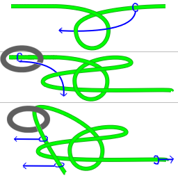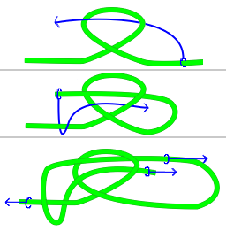 This knot can be tied in a number of ways, including in the air, around an object, and around oneself.