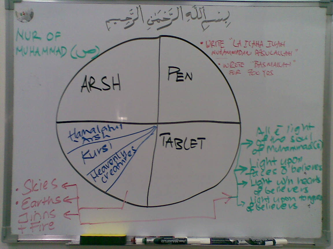 The writing on the board with regards the "Pie of Creation"