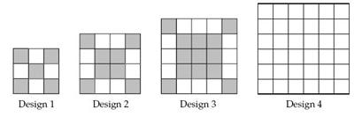 Continue the pattern. How many squares should Bobby shade in Design 4?